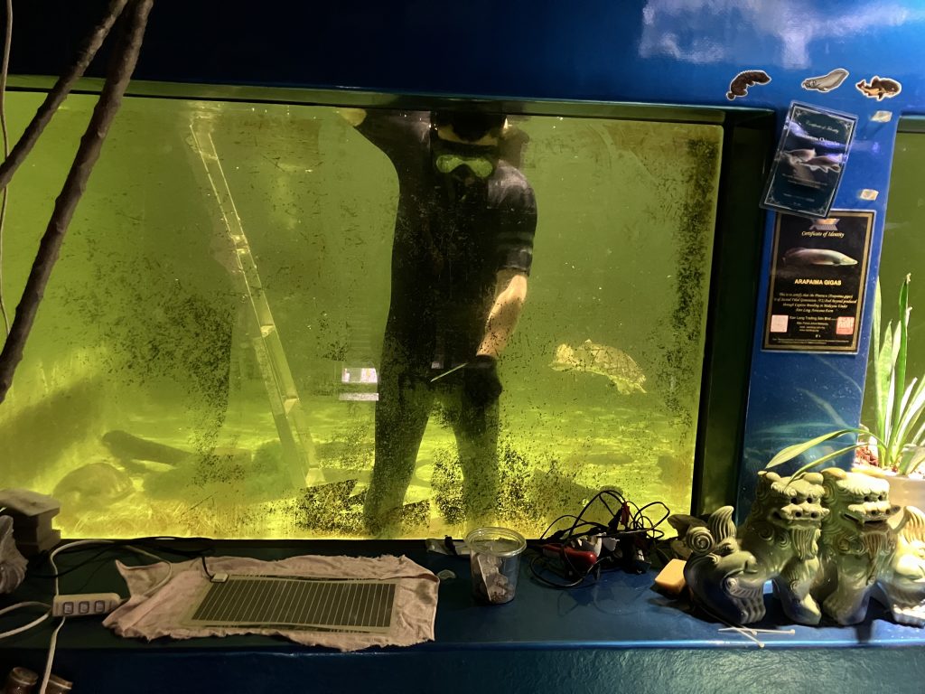 先日弊社の水槽を同じ趣味のお魚が好きな方にお掃除をしていただきました。                                                                 水槽についてしまっていたコケを削ってもらいとても綺麗で魚も見やすくなりました。                                                            ありがとうございました!!